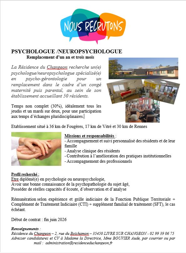 Vous souhaitez rejoindre l’équipe de la Résidence du Changeon ?