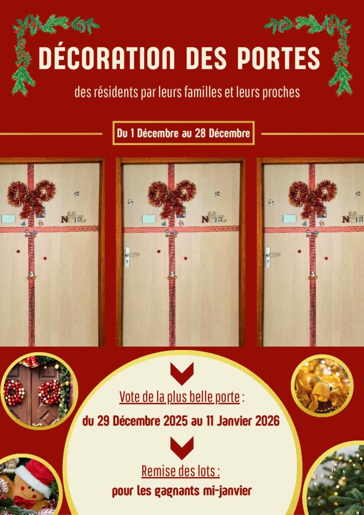 Après une première édition en 2024 et une demande formulée en CVS, l'édition 2025 du Concours de décoration des portes de la Résidence sur le thème de Noël est lancée. Vous êtes invités à venir décorer les portes à compter du 1er décembre